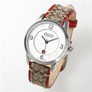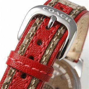 COACHのシグネチャー柄になっているベルトが、この時計の最大の魅力。ひと目でそのブランド力をアピールしてくれます。そしてそれをふち取る赤いステッチが女性らしさを添え、大人の雰囲気に仕上がっていますよね。