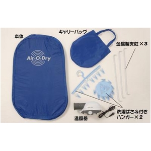 本体・キャリーバック・支柱×3・洗濯バサミ付ハンガー×2・温風器