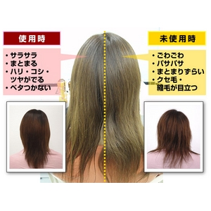 ローヤルゼリー・ハチミツ・ヒアルロン酸・コラーゲンなどをふんだんに配合していますので、使えば使う程に、キューティクルも整えてくれます。