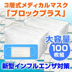 >>> 3層式メディカルマスク ブロックプラス 50枚入×2 100枚セット(色おまかせ)